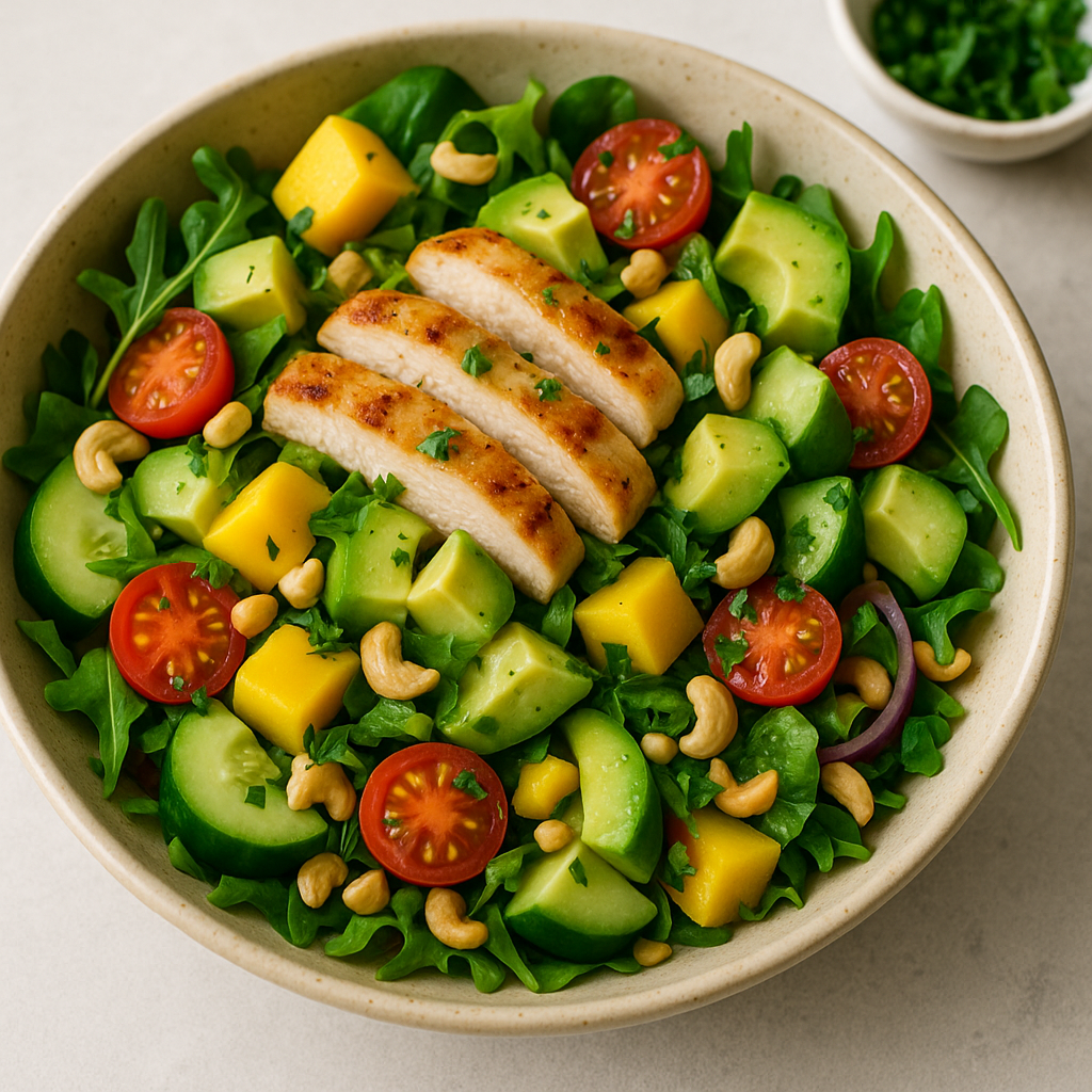Bij De Diepvriesspecialist laten we zien hoe je met slimme diepvriesproducten een frisse en gezonde maaltijd maakt. Deze Kip–Mango–Avocado Salade combineert sappige kipreepjes, zoete mango en romige avocado met knapperige groenten en een frisse dressing. Alles grotendeels uit de vriezer, maar toch boordevol smaak en in een handomdraai op tafel. Perfect als lichte maaltijd, snelle lunch of kleurrijk bijgerecht op een zomerse dag!